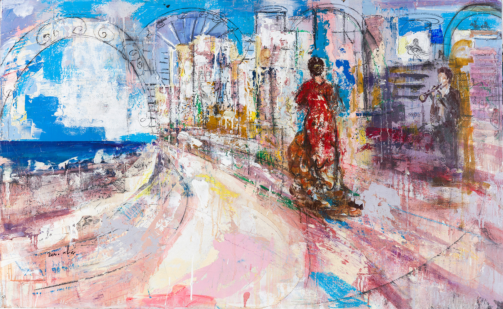 Ilan Itach was born in Jerusalem in 1975 where he still lives and works. Itach is a self-taught artist from an immigrant, working-class neighborhood in Jerusalem. His first studio was nestled on a hilltop overlooking Jerusalem’s picturesque Old City whose ancient walls appear in many of his early artworks.Itach was inspired by Israeli master artist, Ivan Schwebel from whom he learned special painting techniques. He has spent considerable periods of his professional career painting abroad, particularly in Spain’s Toledo and Seville, where he immersed himself in the rich and colorful Spanish culture of music and dance.Itach derives methods from the Renaissance painters, who created their own paints and colors.