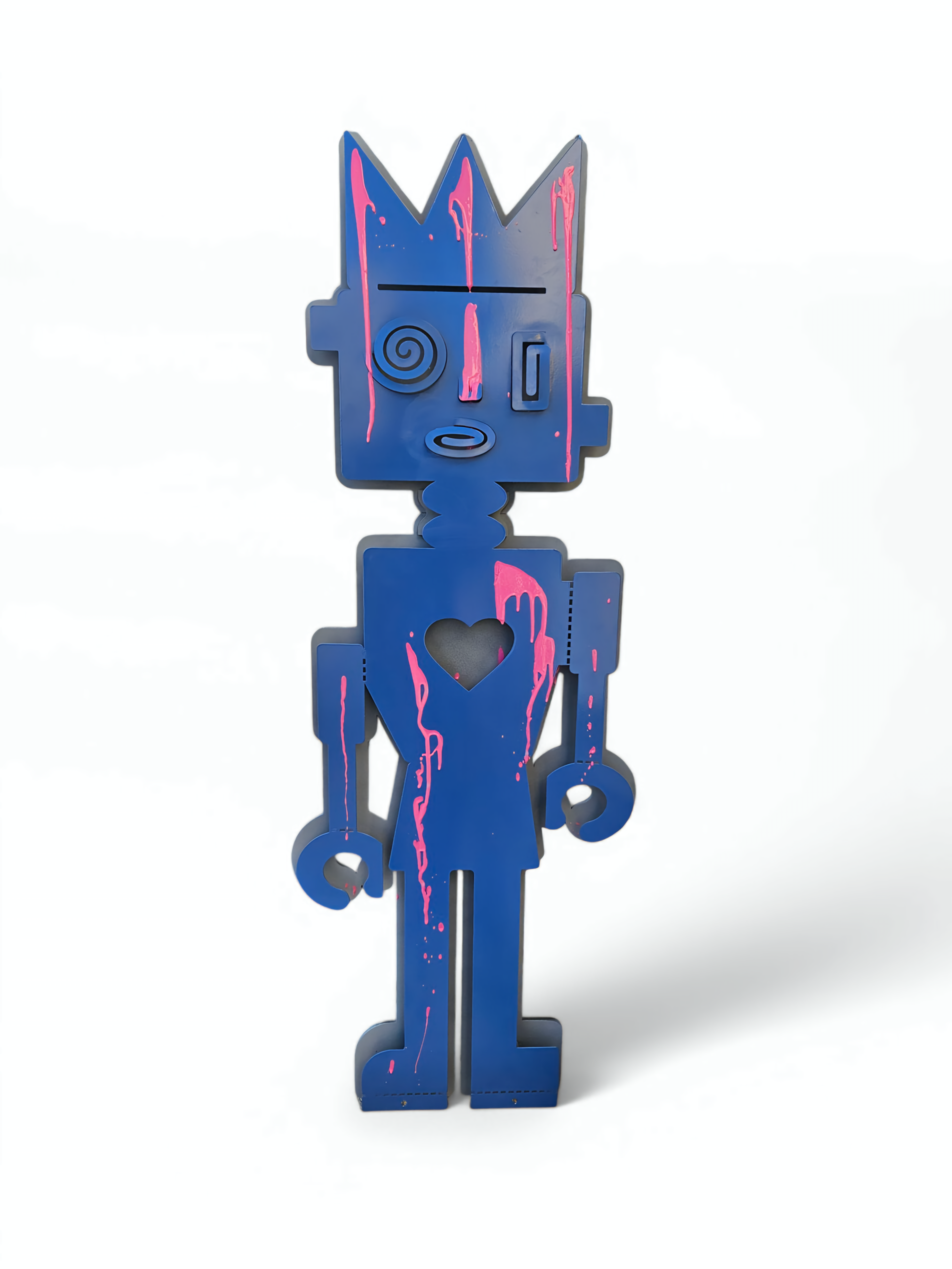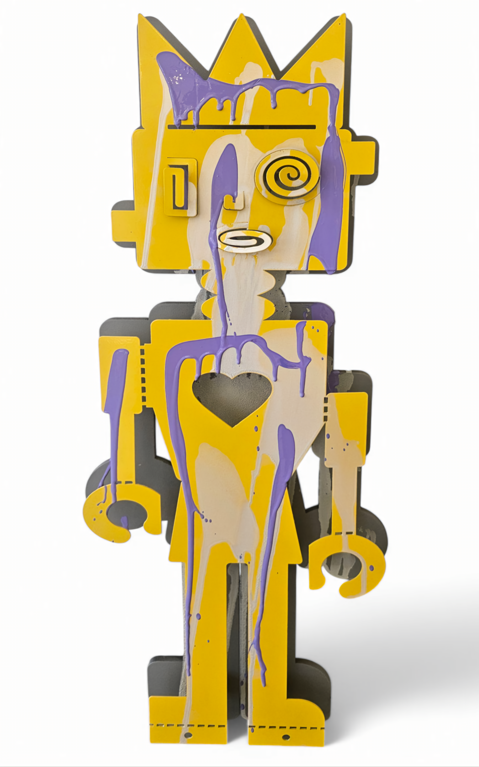 A bold, vibrant sculpture blending Bauhaus, pop art, and funky design. Made with wood, metal, spray, and printed colors, it explores the fusion of technology and humanity. Its geometric form and freestanding, make it a dynamic, thought-provoking statement piece for any modern space by Zion Ezri.